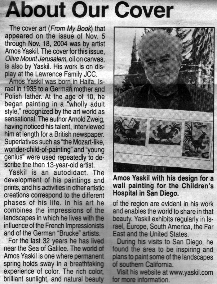 San-Diego Jewish Times "Design for a wall painting for the Children's Hospital in San-Diego"